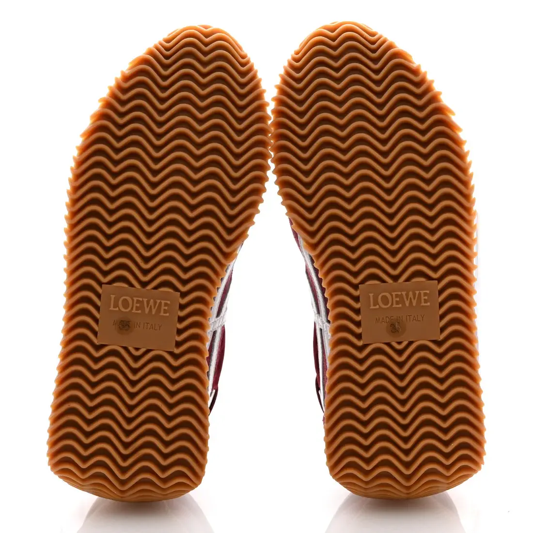 This is an authentic pair of LOEWE Nylon Suede Ballet Runners Sneakers in Burgundy and White. These stylish sneakers are crafted of burgundy suede leather with burgundy leather trim, burgundy nylon, white laces, and brown rubber soles. Follow this item for alerts. Loewe is a registered trademark of Loewe. FASHIONPHILE is not affiliated with Loewe.