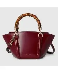 The Gucci Mini Bamboo Top Handle in Burgundy is a sophisticated and elegant bag that brings a deep, rich tone to any outfit. Its basket-inspired shape with a hexagonal base creates a refined and eye-catching silhouette.