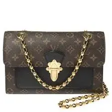A chic and stylish bag that combines classic monogram canvas with rich black leather for a luxurious and sophisticated look. It features a beautiful gold-tone chain strap that can be worn long on the shoulder or doubled for a shorter style.
