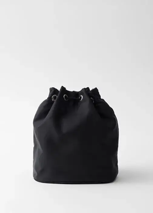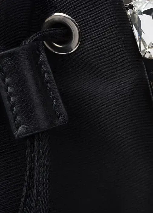 This mini-bag inspired by an archive design features a bucket bag silhouette and is made of Re-Nylon, the innovative regenerated nylon yarn that is an evolution of Prada's iconic fabric. The refined accessory, which can be carried by hand or worn with the removable shoulder strap, is enriched with an elegant jeweled handle