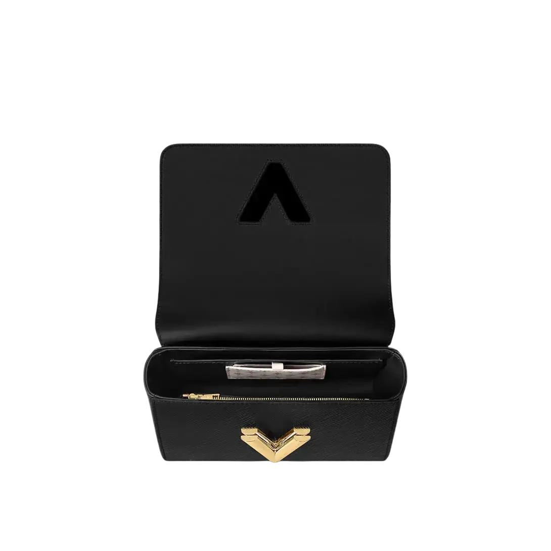 The Louis Vuitton Twist MM is crafted from iconic Epi leather with its signature textured grain, complemented by smooth cowhide-leather trim. It features a refined thin chain adorned with enamel Monogram Flower charms and a luxurious cowhide-leather lining.