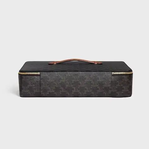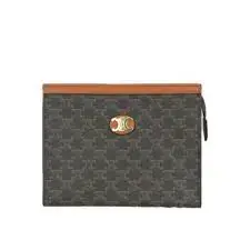 The Celine Small Triomphe Strap Pouch in Tan perfectly blends elegance with practical luxury. Crafted from durable Triomphe Canvas with premium calfskin trim, it features a double zip closure to keep your essentials secure.
