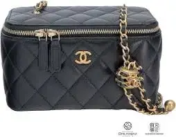 The Chanel Mini Vanity in Black is the epitome of classic elegance and practical luxury. Its mini box shape, top handle, and chain strap offer a stylish and organized way to carry your essentials. The timeless black color makes this bag versatile, effortlessly complementing both casual and formal looks.