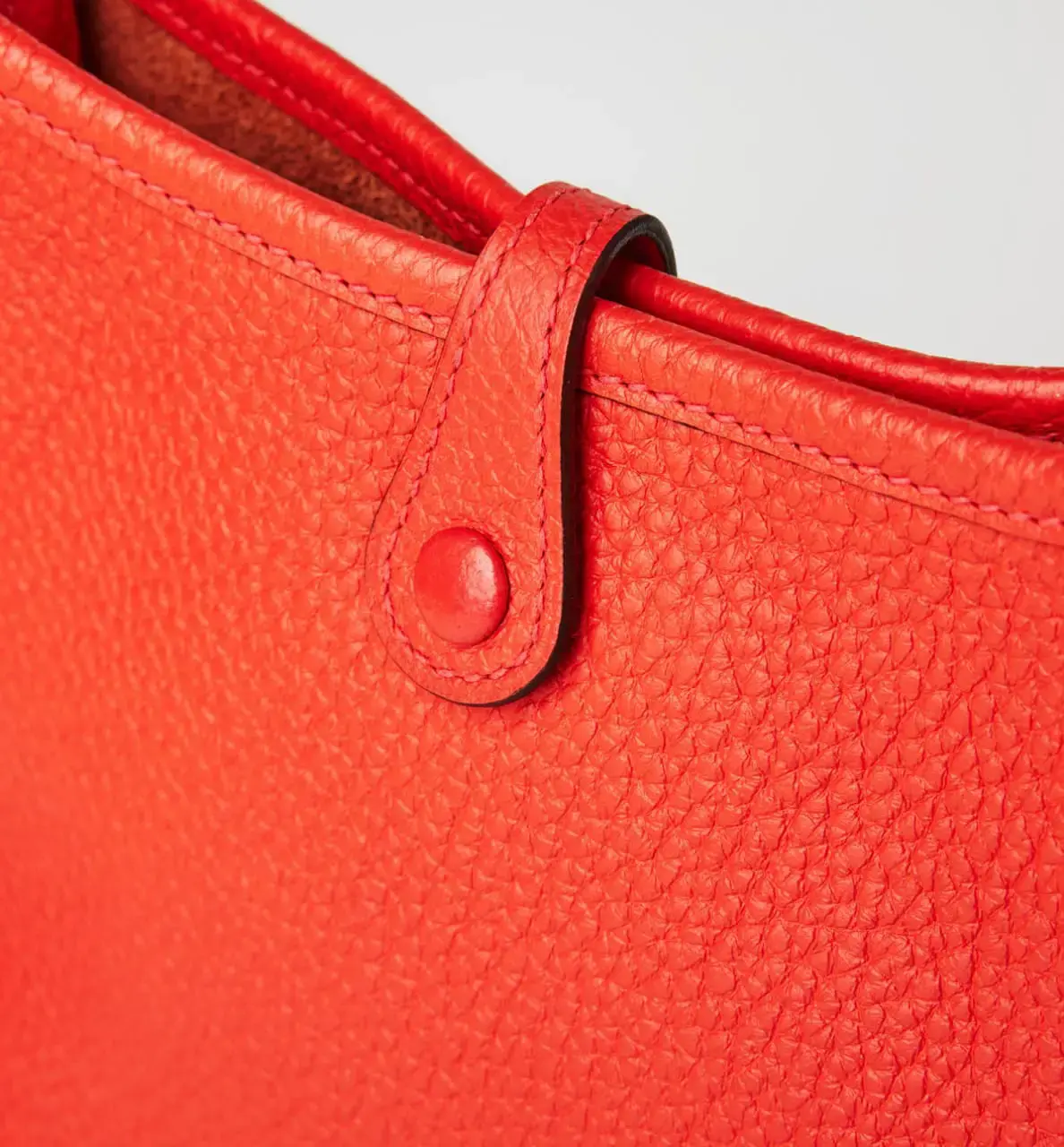Evelyne Crossbody Mini 16 Amazone, Taurillon Maurice/Sangle Zigzag, very special wool bracelet detachable combination Red & Blue, complete set with original receipt from Hermes Boutique: Hermes original packaging, 2 dust bags, ribbon, packaging